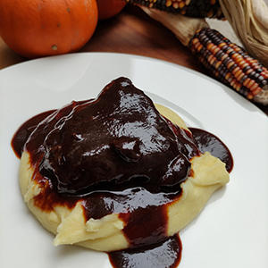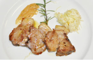 • Coppa di maialino con cotenna, purè di mele e cappucci alla senape