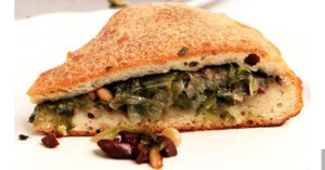 Per il ripieno: 2 cespi scarola riccia, 15 g pinoli, 15 g uva sultanina, 80 g olive nere caiazzane o di Gaeta,1 cucchiaio capperi di Salina sotto sale, 1 spicchio aglio, Olio extravergine di oliva Dop Colline Salernitane q.b. Sale marino integrale q.b.