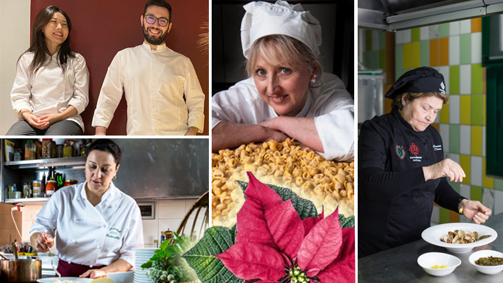 Stessa passione ma diverso il menù di Lucia Antonelli, conosciuta come la Regina del tortellino bolognese. Nella sua Taverna del cacciatore a Castiglione dei Pepoli (Via Cavaniccie 6, tel. 0534/91143 www.tavernadelcacciatore.com) propone specialità legate alla cucina montanara dell’Appenino Tosco-Emiliano, tra cui piatti di selvaggina, piccione arrosto, fegatelli di maiale nella rete, funghi cucinati in vari modi, pasta fresca preparata a mano ogni giorno: dai tortellini ai ravioli di zucca o di ortica o altri ripieni in base alla stagione e alla disponibilità del suo orto. Per Natale Lucia non apre il ristorante, ma propone un menù tradizionale da asporto che ognuno può prenotare entro il 22 dicembre e passare a ritirare anche il 24. Tra le proposte tortellini in brodo e lasagne alla bolognese, bollito misto con varie salse e giardiniera, e un dolce – la torta di riso – che è piatto simbolo delle feste di queste zone.