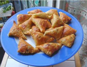 Ripieno: 200 grammi circa di formaggi vari (gouda, fontina, quartirolo, feta, pecorino, ricotta) tritati, 1 uovo intero, 2 cucchiai da tavola colmi di prezzemolo tritato.