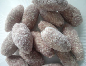 Ingredienti per 4 persone: 300 g carne tritata di manzo, 1 uovo, 2 cucchiai di pane secco, 1 cucchiaio di cannella, pepe, sale, farina q,b.