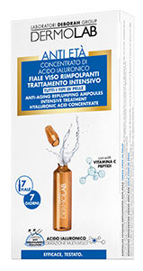 Antietà Concentrato di Acido Ialuronico Fiale Viso Rimpolpanti, Trattamento Intensivo DermoLab (7 fiale x 1,8 ml, € 15,90, profumeria, negozi specializzati). La formula concentrata, ma a rapido assorbimento, annovera, tra gli altri, Dl Lift Complex (distensivo), vitamina C, tetrapeptidi, resveratrolo e un pool di acidi ialuronici a diversi pesi molecolari.