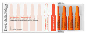 Astaxantina+ Ampolle Trattamento Urto Antirughe Rigeneranti Diego dalla Palma (7 fiale x 1,5 ml, € 32,90, profumeria) contrasta le rughe e lo stress ossidativo. Ingredienti top: l’Astaxantina, antiossidante e il Bakuchiol, che affina la grana della pelle e riduce progressivamente imperfezioni e rughe e linee sottili.