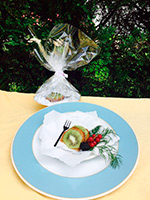 Preparazione: affettare con un’affettatrice il pane, pelare il kiwi e tagliarlo a fettine. Alternare il pane alla frutta e disporlo sul piattino guarnendolo a piacimento.