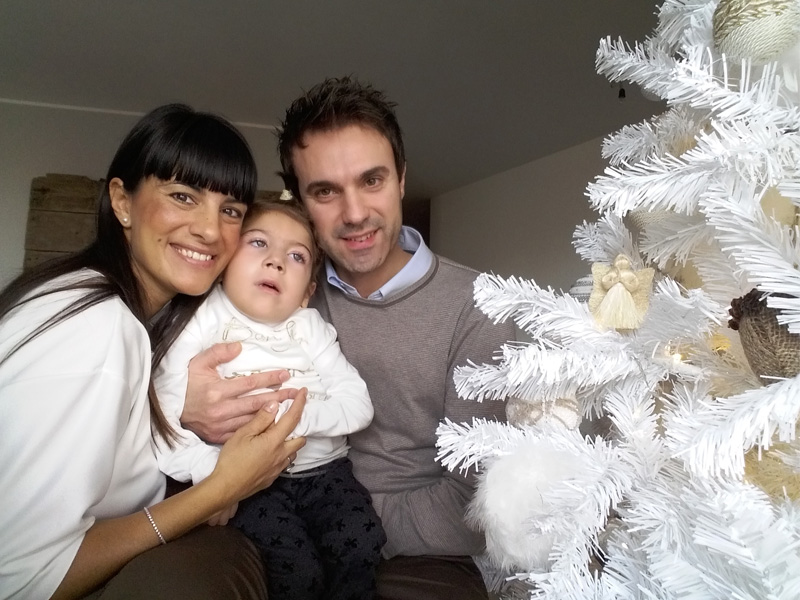 Sofia tornò a casa dopo una settimana e tutto sembrava andare bene fino al 20° giorno quando le crisi epilettiche si erano aggravate e comparivano praticamente ogni ora. Siamo corsi con mio marito al Pronto Soccorso e la bimba è stata trattenuta per un mese all’ospedale di Ravenna, la città dove abitiamo. La situazione era infatti ben più grave di come sembrava: oltre alle crisi epilettiche, Sofia non aveva una corretta deglutizione, era rigida, aveva dismorfismi osteoarticolari , ritardo psicomotorio, microcefalia e una serie di altri problemi. Con le terapie antiepilettiche Sofia stava meglio. Sottoposero la bimba, e anche me e mio marito, a una serie di esami genetici, come la mappatura di 100 geni, ma l’esito fu negativo. I medici ci dissero allora che poteva trattarsi di una malattia genetica rarissima, di cui Sofia sembrava essere il primo caso: sulla cartella clinica c’era scritto Encefalopatia epilettica.