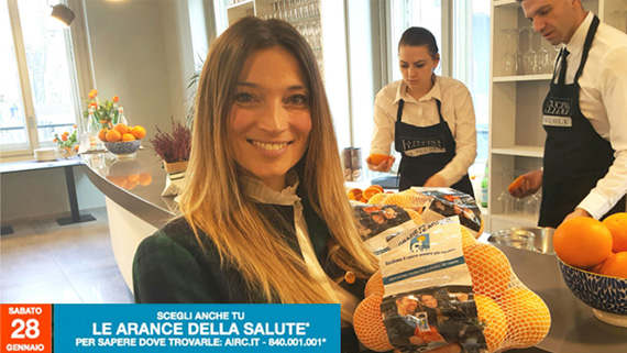 Sabato 28 gennaio, le tradizionali arance nelle piazze italiane. Ritornano le arance AIRC in oltre 2.700 piazze italiane (reperibili al sito www.airc.it o telefonando al numero verde: 8410.001.001) sabato 28 gennaio, grazie all’aiuto di 20mila volontari. Con una donazione di 9 euro, si potrà avere una reticella da 2,5 kg di arance rosse, da mangiare al naturale, spremute e in insalata, e una speciale Guida con preziose informazioni per la selezione dei cibi da portare in tavola, per una lettura consapevole delle etichette alimentari e per sbizzarrirsi con alcune ricette d’autore, a base di arance, realizzate appositamente per AIRC dallo chef Sergio Barzetti in collaborazione con La Cucina Italiana. «È fondamentale – conclude la campionessa Margherita Granbassi, in veste di volontaria e ambasciatrice dell’Associazione – che ciascuno faccia la propria parte seguendo stili di vita salutari, perché le nostre scelte quotidiane si ripercuotono sulla nostra salute».