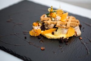 Mousse alla zucca e mandarini, frolla di grano antico, cremoso alla nocciola e cioccolato alla salvia