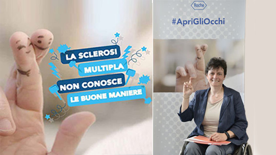 Nessuno meglio di Roberta Amadeo (nella foto), Past-president nazionale AISM (Associazione Italiana Sclerosi Multipla) e malata da 25 anni, sa raccontare cosa si prova ad avere le continue limitazioni che la malattia impone. E lo ha fatto i giorni scorsi a Milano, in occasione dell’evento: “La sclerosi multipla non conosce le buone maniere”, per il lancio della Campagna #ApriGliOcchi, promossa da Roche, con il patrocinio di AISM, dove è stato presentato un video per mostrare gli equivoci in cui spesso incorrono i malati di Sclerosi Multipla, soprattutto nelle prime fasi quando il movimento comincia a diventare impacciato e insicuro, con gravi ripercussioni psicologiche. Protagonista del video è una ragazza con SM, che durante diversi momenti della sua quotidianità subisce alcuni inaspettati “dispetti” da parte della gemella “invisibile”, che raffigura proprio la sclerosi multipla. Messa in imbarazzo da questi improvvisi dispetti, la protagonista trova un muro di indifferenza e fastidio davanti a sé, che si sbriciola di fronte alle buone maniere di un taxista che, andando oltre le apparenze, l’aiuta a salire in auto. Un video emozionante che mette in scena, da un lato l’invisibile invadenza della sclerosi multipla, e dall’altro l’importanza di guardare con occhi diversi, rispettosi e forse semplicemente educati. L’hashtag della campagna è #ApriGliOcchi e il video (visibile a fine articolo) sarà condivisibile sulla pagina Facebook,“La sclerosi multipla non conosce le buone maniere”, e sul canale YouTube di Roche. Simbolo della campagna è “l’abbraccio” tra due dita incrociate con un sorriso disegnato, come veicolo di emozioni positive, dalla vicinanza alla comprensione, a messaggi positivi per chi vive un momento di difficoltà che non traspare e vedrà il coinvolgimento attivo degli utenti che fotografandolo potranno esprimere l’adesione alla campagna.