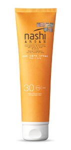 • Nel cuore della formula di Sun Care Cream Face & Body Spf 30 Nashi Argan (150 ml, 24,50 euro, parrucchiere e negozi monomarca), olio bio di argan, idratante ed elasticizzante, moringa oleifera, antiossidante e fermento Thermus Thermophillus, attivo naturale in grado proteggere la struttura cellulare dai raggi Uv.