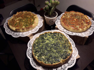 Stendere la quiche con il mattarello, imburrare un disco di carta da forno dalle dimensioni uguali a quello della teglia dove andrà messo, adagiarvi sopra la pasta brisé, aggiungere tutti gli ingredienti precedentemente amalgamati quindi tagliare la pasta brisé in eccedenza sul bordo della teglia e con il dito pollice premere la pasta verso l’interno per creare uno spessore. Mettere in forno a 180° per 45 minuti. Il ripieno si può preparare anche con spinaci (circa 250 grammi e, se surgelati, vanno fatti scongelare in padella senza acqua e poi strizzati bene e fatti saltare in padella con olio, un pizzico di sale di pepe) oppure asparagi (circa 250 grammi da lessare al dente e poi dopo aver tagliato il gambo a piccole rondelle, lasciandone poco vicino alla punta dell’asparago da saltare in padella con un pochino di burro)