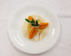 4.Crème brulée alla zucca bertagnina de.co con crackers al rosmarino e pancetta alle erbe