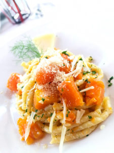 3.Fusillo casereccio di Gragnano con zucca napoletana, scaglie di caciotta canestrata sorrentina e grattugiata di provolone del monaco