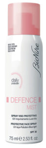 Ultraleggero Defence Mist Spray Viso Protettivo Uv-Inquinamento-Luce blu Bionike (75 ml, euro 14,90, farmacia) crea un film invisibile che protegge la pelle del viso dalle aggressioni esterne: raggi Uv, inquinamento e luce blu. Dall’effetto rinfrescante, idratante e fissativo del make-up, contiene, tra l’altro, l’Anti-Pollution Globale, un fitocomplesso di attivi da germe di riso bianco, rosso e nero.