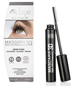 Testato per occhi sensibili e certificato biologico da EcoCert Cosmos Organic, il Mascara 3D Black Lepo (30 euro, erboristeria, farmacia e su www.lepo.it) è dotato di applicatore tridimensionale a sfaccettature multiple per volumizzare, allungare e separare le ciglia.