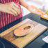 - Stendere l’impasto pronto per la pizza e lasciarlo riposare per 20 minuti (in alternativa preparare l’impasto in casa con circa 300 gr di farina 00 e 10 gr di lievito di birra): farla riposare, lievitare e stendere con un mattarello.