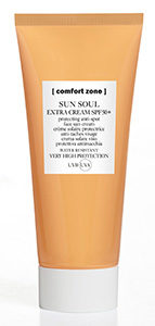 Priva di siliconi, Sun Soul Extra Cream Spf 50+ [comfort zone] (60 ml, 29 euro, Spa e centri benessere) offre protezione contro i meccanismi di invecchiamento e l’iperpigmentazione fotoindotta, prevenendo la comparsa di macchie cutanee e attenuando quelle esistenti.