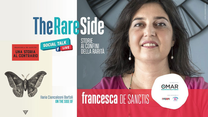 Una mamma, Francesca De Sanctis, che è anche giornalista e scrittrice, racconta dal vivo la sua esperienza con le malattie rare, con la sua “Storia al contrario”, che è anche il titolo del suo libro. Per lei, nata e cresciuta senza particolari problemi fisici, la malattia rara, miastenia gravis, è comparsa all’età di 28 anni, all’inizio della sua carriera lavorativa al quotidiano l’Unità e con una bimba piccola da gestire. Da lì in poi si sono alternati momenti di sofferenza, in un corpo che non rispondeva più ai suoi comandi, a periodi di difficoltà economica per la chiusura del giornale dove lavorava, ma anche momenti di gioia, come la nascita della seconda figlia e il supporto costante del marito, che è sempre stato il suo punto di riferimento. La sua storia, assieme a quelle di altre persone con malattie rare, viene raccontata in diretta su Facebook nel Social Talk nell’ambito della Campagna #TheRAREside, storie ai confini della rarità, presentato in questi giorni in occasione della Giornata nazionale delle Malattie Rare (28 febbraio). Voluto e realizzato dall’Osservatorio Malattie Rare (OMaR) con l’ambizione di proporre uno spaccato quotidiano delle persone con malattia rara, si può seguire in diretta sul portale di OMaR e sul canale Facebook ogni martedì e giovedì alle 17.30, fino al 16 marzo, più una puntata dedicata alle donne in programma l’8 marzo.