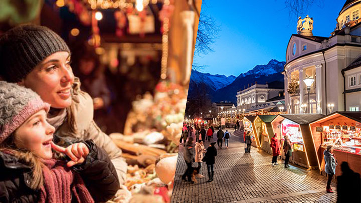 Per sei settimane i mercatini riempiranno di luci e colori le vie di Merano. Anche qui stand gastronomici e dell’artigianato, eventi e attrazioni, fra cui la celebrazione di San Nicolò e dei Krampus (5 e 6 dicembre). Dalle finestre del Palais Mamming, il museo civico della città, si esporrà ogni sera un diverso oggetto e gli stand gastronomici saranno un invito costante per stare insieme, assaporando strauben, vin brulé e piatti locali. In collaborazione con Trenitalia, è disponibile uno sconto del 50% sui biglietti di andata e rimborsi fino a 20 euro a persona sui soggiorni di almeno 3 notti in strutture convenzionate, più altre piccole attenzioni, come la nuova tazza natalizia da collezione dei Mercatini di Natale. Quando? Dal 26 novembre al 6 gennaio. Per info: www.merano.eu