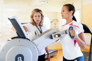 «Il protocollo settimanale prevede per il primo giorno una visita medica, con misurazione della pressione e analisi ematochimiche (inclusive di profilo lipidico, trigliceridi, glicemia, funzionalità renale)», spiega il professor Domenico Corrado, coordinatore e promotore del programma educativo di prevenzione cardiovascolare, con specifica attività di comunicazione e divulgazione scientifico-culturale. «L’impostazione del programma, effettuata dall’equipe medica operante presso l’Ermitage Medical Hotel, prevede per ciascuna persona la misurazione dei valori antropometrici (peso, circonferenza vita, fianchi e addome, Indice di Massa Corporea e misurazione dello spessore delle pliche a livello del tricipite e di quelle sovrailiache. La persona viene poi sottoposta a un test ergo-spirometrico sottomassimale (pedalando sulla cyclette) per valutare la capacità aerobica mediante la misurazione del massimo consumo di ossigeno. Nei soggetti con controindicazioni mediche, si prevedono, per cinque giorni nella settimana, una serie di esercizi in palestra e su cyclette, per una durata giornaliera che va da mezz’ora a un’ora circa e camminate sostenute. Per chi ha invece problemi, specialmente di tipo cardiovascolare o polmonare, oppure è in sovrappeso, si preferisce un programma più “soft”, con esercizi prevalentemente in acqua».