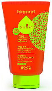 Con caviale verde e acqua costituzionale vegetale biologica di bergamotto. Sunny Maschera Rigenerante Intensa Biomed Hairtherapy (200 ml, € 17,50, parrucchiere e su www.socostore.it) svolge un’azione nutriente, rivitalizzante ed emolliente sulla chioma stressata dal sole.