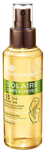 Solaire Corps & Cheveux Huile Protectrice Spf 15 Yves Rocher (100 ml, € 14,95, negozi monomarca) protegge e nutre la pelle e la fibra capillare dall’aggressione dei raggi solari. La sua formula resistente all’acqua, setosa e senza effetto unto, contiene filtri Uva e Uvb. Privo di oli minerali, coloranti e parabeni.