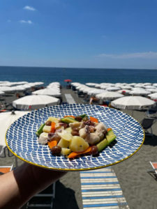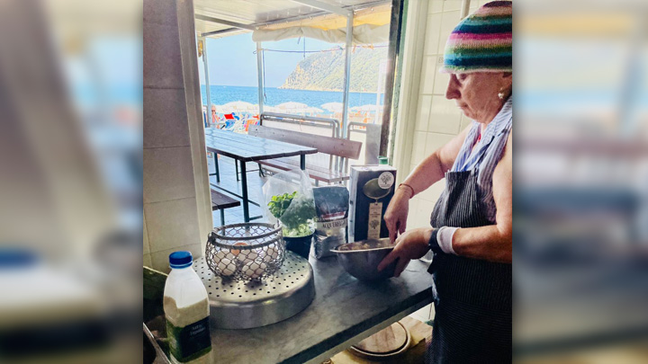 Cucina del territorio, soprattutto a base di pesce, materie prime esclusive per l’elevata qualità e la bontà che conquistano già al primo assaggio: questi i punti di forza del ristorante Lido Beach (telefono 0185. 42462 oppure 328.7569007 o ancora 335.5923994), con vista mare, perché situato nella veranda del conosciuto e apprezzato omonimo stabilimento balneare di Riva Trigoso, un piccolo e antico borgo nel golfo del Tigullio a 4 chilometri da Sestri Levante che ha mantenuto il suo aspetto antico con le casette basse e colorate che si affacciano sulla spiaggia ampia e ben curata. La ricerca delle ricette della tradizione, la loro preparazione, così come la scelta accurata degli ingredienti (solo per portare qualche esempio: le verdure sono coltivate negli orti della zona, l’olio extravergine di oliva è prodotto da un frantoio locale, le uova arrivano dal pollaio di famiglia) sono merito di Francesca (Rossi) che con il marito Claudio (Noceti) si occupa della cucina, mentre il figlio Edoardo con il cugino Alessandro (Noceti) sono sempre presenti in sala (tutti i giorni per il pranzo e il sabato anche per la cena così come nelle ricorrenze importanti) per consigliare i piatti del giorno e guidare alle scelte più indicate ai propri gusti. L’occhio esperto di Francesca, che sin da ragazza in famiglia, dal papà che aveva una pescheria, ha imparato ad acquistare il pesce più fresco e più in linea con la stagione (pochi infatti sanno che anche il pesce come la frutta e la verdura ha una stagionalità) e a cucinarlo con sapiente semplicità e l’impiego di erbe aromatiche locali, sono una garanzia di pranzi e cene all’insegna di un’esperienza straordinaria che resta impressa nelle papille gustative e stimola gli ormoni del buonumore. Soprattutto per la capacità delle mani di Francesca di esaltare il sapore e il profumo originale degli ingredienti, per il loro equilibrato mix e per la digeribilità di tutte le proposte gastronomiche: di questi tempi davvero fattori non da poco. Persino il fritto di pesce risulta a prova di digestione per il metodo di infarinarlo, per l’impiego di farine particolari e di olio di ottima qualità!