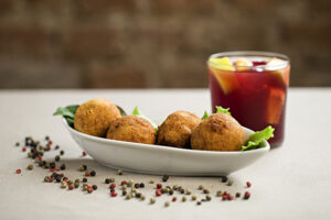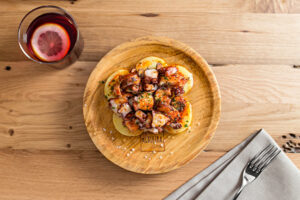 Lungo l’elenco di tapas, almeno una ventina, più che assaggini vere e proprie portate, che Mateus prepara ogni giorno anche in base alla stagione: sono vere delizie mai banali, ma sempre all’insegna dell’armonia di sapori come Puntillas bravas, calamaretti fritti serviti con salsa Brava e Alioli (una salsa al pomodoro leggermente piccante e la classica maionese all’olio); Alcachiofa y idiazabal, carciofi in olio di cottura e fritti serviti con crema di formaggio idiazabal e scorza di limone candito; Calabaza y cabrales , ovvero zucca arrostita con fonduta di formaggio erborinato, confettura di mela cotogna, noce brasiliana speziata e lardo di patanegra.