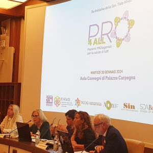 «Ormai è ampiamente provato che per migliorare il Servizio Sanitario Nazionale occorra mettere i bisogni e i diritti dei pazienti al centro delle decisioni di politica sanitaria. Per farlo, il Gruppo PRO4All sta lavorando da più di due anni per promuovere la necessità di raccogliere i dati dei pazienti basati sul vissuto che gli stessi hanno delle cure e dei servizi», ha spiegato Mario Alberto Battaglia, Membro PRO4All e Direttore Generale AISM. «Pertanto, l’impegno del nostro Gruppo ha visto in una prima fase lo sviluppo di alcuni lavori pubblicati su riviste scientifiche per ampliare la letteratura in materia di utilizzo dei PROs», ha aggiunto Massimo Di Maio, Membro PRO4All e Presidente Eletto AIOM. «Siamo certi che, basandoci su evidenze e dati scientifici solidi, si possa accelerare l’applicazione degli esiti di salute nell’ambito della ricerca clinica, ma anche la stesura di linee di indirizzo sulla raccolta, analisi e interpretazione dei PROs in fase valutativa dei trattamenti, auspicando una presenza istituzionalizzata dei rappresentanti dei pazienti negli Enti regolatori».