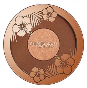 Duo Bronze&Highlight Deborah Milano (10,50 euro, profumeria e grandi magazzini) è uno speciale duo di polveri compatte, che combina un bronzer dal finish mat a un illuminante dal finish perlato. In una sola tonalità, la texture vellutata e la lunga tenuta lo rendono perfetto per un risultato sun-kissed.