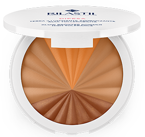 La cialda di Difesa Terra Illuminante Abbronzante Alta Tollerabilità Rilastil (9 g, € 33, farmacia) racchiude quattro polveri compatte che donano un effetto luminoso e naturalmente abbronzato, ideale per chi desidera un incarnato radioso tutto l’anno. Si adatta a diverse tonalità della pelle.