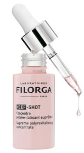 A base di NCEF, complesso con acido ialuronico ad azione rimpolpante e 50 ingredienti rivitalizzanti per agire su rughe, tono, luminosità, uniformità, pori e idratazione della pelle,NCEF – Shot Concentré Polyrevitalisant SuprêmeFilorga Paris(15 ml, € 87, farmacia) è un trattamento urto che promuove il rinnovamento della pelle.