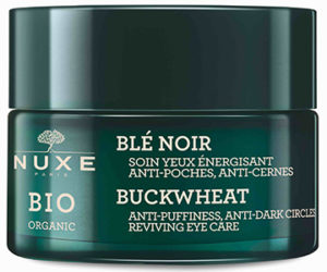 Con il 99% di principi attivi naturali e il 72% biologici, Bio Organic Blé Noir Soin Yeux Énergisant Anti-poches, Anti-cernes Nuxe Paris(15 ml, € 31,90, farmacia e Spa) associa grano nero bretone e vitamina E per proteggere il contorno occhi, migliorare l’idratazione e correggere i segni di stanchezza.