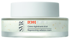 Arricchita con il 20% di una coppia di vitamine C stabilizzate, [C20] Biotic Crème Régénérante Éclat SVR(50 ml, € 43, farmacia e profumerie Marionnaud) rivitalizza e illumina la pelle. La texture contiene microsfere di vitamine E che si fondono al contatto, liberando le loro proprietà antiossidanti.