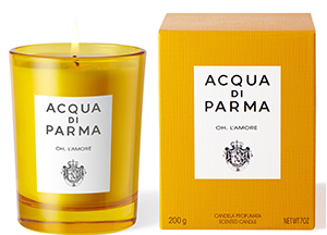 Oh, L’amore Candela Profumata Acqua di Parma (200 g, € 65, profumeria) celebra un sentimento autentico in una fragranza che regala un’atmosfera dolce e sensuale per la casa. Le note speziate e intense di pepe nero e chiodi di garofano si accostano a un’esplosione di accenti ambrati e cremosi, come benzoino e fava tonka.