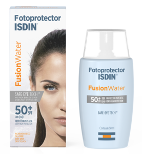 Fusion Water Spf 50+ Fotoprotector ISDIN (50 ml, euro 22,90, farmacia) è un fotoprotettore viso a base d’acqua che offre una protezione Uv molto elevata ma invisibile, donando una piacevole sensazione di freschezza. La sua texture ultraleggera si assorbe rapidamente e prepara il viso al trucco, lasciando la pelle setosa al tatto.