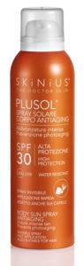 La texture di Plusol Spray Solare Corpo Antiaging Spf 30 Alta Protezione Skinius (200 ml, 29 euro, farmacia e www.skinius.it) si assorbe rapidamente senza ungere la pelle ed è resistente ad acqua, sudore e sfregamenti. Il complesso Plusolina dona un’abbronzatura luminosa, dorata e omogenea, mentre una microalga marina unicellulare contribuisce al naturale processo di pigmentazione cutanea, prolungando il colore.