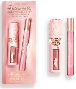 Pillow Talk Love Frequency Kit Charlotte Tilbury (€ 48, da Sephora) comprende l’iconico profumo (5,5 ml) con estratto di rosa e pepe rosa, e il lucidalabbra volumizzante Pillow Talk (5,5 ml). Grazie alla tecnologia Heat + Ice Plumpgasm, unita all’acido ialuronico, rende all’istante le labbra più piene del 93%.