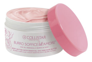Con oli essenziali e burro di rosa, il Burro Soffice dell’Amore Collistar (200 ml, 26 euro, profumeria) è simile a un soffio di sensualità sussurrata. Deve le sue proprietà nutrienti e leviganti al burro di karitè potenziato dal burro di rosa, idratante e lenitivo. Il rosa è la nuance dominante.