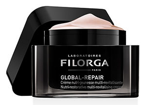 Ben 50 meso-ingredienti, 3 attivi nutrienti e 4 booster cellulari distinguono Global-Repair Crème Nutri-Jeunesse Multi-Revitalisante Filorga (50 ml, 109 euro, farmacia). Obiettivi: ridensificare e illuminare la pelle, schiarire le macchie e rimodellare l’ovale.
