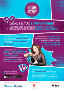 Prende il via l’iniziativa “IO NON SCLERO”, un progetto di informazione e sensibilizzazione sulla Sclerosi Multipla (SM), sviluppato da Biogen e da Fondazione Onda, l’Osservatorio nazionale sulla salute della donna e di genere, in collaborazione con l’Associazione Italiana Sclerosi Multipla (AISM) e con il patrocinio della Società Italiana di Neurologia (SIN). Quest’anno l’iniziativa chiama a raccolta le circa 130 mila persone che in Italia vivono con la SM e le invita a condividere le loro storie, per raccontare qual è la risorsa inaspettata che hanno scoperto di avere dopo la diagnosi e che li ha aiutati ad affrontare la malattia: il loro super potere. Non solo condivisione di storie, l’iniziativa è un vero e proprio casting, che porterà alla nomina di 3 nuovi “ambassador” della community online cresciuta in questi anni, con oltre 78.000 fan su Facebook. Per partecipare basta andare sul sito www.iononsclero.it, da oggi fino al 13 giugno, e inviare un testo accompagnato da un’immagine.