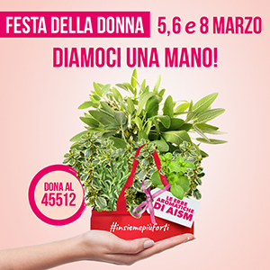 “Non fermiamo la ricerca perché vorrei continuare a sperare. Vorrei che un giorno si potesse dire: c’è la cura”. Lo chiede Chiara, giovane mamma con sclerosi multipla. Lo chiede in occasione della Festa della Donna perché la sclerosi multipla, una grave malattia del sistema nervoso, colpisce prevalentemente le donne sotto i 40 anni, in un rapporto di 2 a 3 rispetto agli uomini. AISM, Associazione Italiana Sclerosi Multipla distribuirà le Erbe Aromatiche per aiutare la ricerca, ma soprattutto per potenziare i servizi dedicati alle donne con sclerosi multipla. I volontari di AISM accoglieranno la cittadinanza nei punti di solidarietà delle principali piazze italiane sabato 5 e domenica 6 marzo e anche martedì l’8 marzo per la Festa della Donna. E’ già possibile prenotare la propria confezione di Erbe Aromatiche contattando la Sezione provinciale della propria città il cui elenco è consultabile su http://www.aism.it/aromatiche oppure chiamando direttamente la sezione provinciale AISM del proprio territorio.