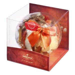Alchimie di frutta secca ed esotica disidratata di Noberasco, proveniente da ogni parte del mondo, racchiuse in uno scrigno trasparente, una small-ball in plexi per un regalo che unisce alla dolcezza i benefici della frutta secca. La composizione variegata e cromaticamente attraente prevede una selezione di agrumi come pomelo, arancia, limone, mango, zenzero e fichi, ma può essere arricchita e personalizzata a piacere a seconda dei gusti propri o dei destinatari del dono. In vendita a 18 euro per 370 g di frutta nei negozi Noberasco di Milano, San Remo, Albenga, Treviso, Torino, Prato, Roma. Chi abita in altre città può invece optare per altre proposte golose e raffinate di Noberasco, acquistabili online sul www. noberasco.it. Tra queste: lo Scrigno esotico che al costo di 45 euro racchiude in un’elegante confezione in seta suddivisa internamente in 4 scomparti oltre 1 kg e 100 grammi di frutta essiccata esotica fra cui cocco, papaya, ginger ananas, zenzero, melone, pomelo, mango, mandarino un piacere per la vista oltre che per il palato. Idea regalo raffinata in una confezione dal design compatto anche il Prisma Cioccofrutta a 28 euro con 670 grammi di frutta tra cui uva al rhum, vari tipi di frutta disidrata melone, pomelo, papaya e inoltre zenzero ricoperto di cioccolato fondente, fragole ricoperte di cioccolato bianco, crokkamela ricoperta di cioccolato fondente.