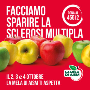 Una mela per la lotta alla sclerosi multipla, malattia del sistema nervoso centrale che colpisce principalmente i giovani e di cui non si conoscono ancora le cause e la cura definitiva. Da venerdì 2 a domenica 4 ottobre – giornata del Dono Day – “La Mela di AISM” sarà disponibile presso i punti di solidarietà sul territorio. Con una donazione di 9 euro è possibile prenotare il proprio sacchetto da 1,8 kg di gustose mele rosse, verdi e gialle contattando la Sezione Provinciale AISM della propria città il cui elenco è consultabile su http://www.aism.it/mela. La Mela di AISM è un’iniziativa promossa dall’Associazione Italiana Sclerosi Multipla, sotto l’Alto Patronato del Presidente della Repubblica.