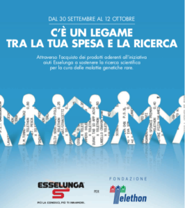 Fino al 12 ottobre, con l’acquisto di uno dei tanti prodotti che aderiscono all’iniziativa contrassegnati da un cartellino dedicato, Esselunga devolverà un contributo solidale alla ricerca scientifica di Fondazione Telethon. Le donazioni possibili, da 20 centesimi a 2 euro secondo i prodotti acquistati, saranno riportate sullo scontrino, dove il cliente potrà leggere l’importo della donazione e il valore cumulato. La campagna sarà valida anche per le spese effettuate online su Esselunga.it e nelle profumerie EsserBella. <Con Esselunga rafforziamo quella fitta rete di donazioni che fa del nostro Paese uno tra i più generosi al mondo e rende possibile la missione di Fondazione Telethon>, commenta Luca di Montezemolo, Presidente di Fondazione Telethon. <Contiamo molto su questa alleanza perché sappiamo che ogni tassello che si aggiunge imprime una forte accelerazione alla nostra ricerca, contribuendo a migliorare la qualità della vita delle persone con una malattia genetica rara e alimentando la speranza di quanti domani potrebbero avere una cura>.