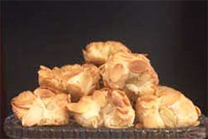 Ingredienti: 130 gr di mandorle dolci in polvere (farina di mandorle), 130 g di zucchero bianco, 1 cucchiaio di acqua di fior d’aranci, un cucchiaio di olio di mandorle, mandorle dolci a lamelle (se non trovate le mandorle a scaglie potete frullare grossolanamente).
