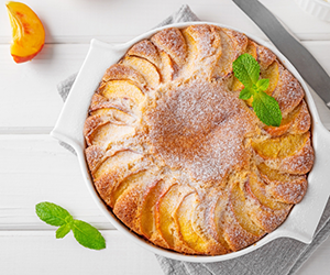 TORTA MORBIDA E CROCCANTE DI PESCHE E FORMAGGIO