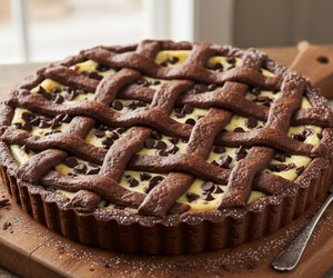 Per finalizzare la crostata: 400 g di ricotta vaccina, 80 g di zucchero semolato, 1 tuorlo d’uovo, 100 g di cioccolato grattugiato grossolanamente (oppure gocce di cioccolato), 1 bacca di vaniglia (oppure 2 bustine di vanillina).