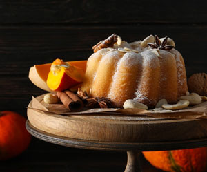 Cospargere la ciambella di zucca con lo zucchero al velo (ma non è obbligatorio).