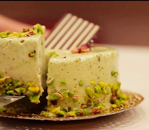 - Passato il tempo di raffreddamento, togliete lo stampo dal freezer, capovolgetelo sul piatto da portata. Decorate con pistacchi grattugiati per un effetto “total pistacchio” o a piacere con altra frutta (suggerirei le fragole se proprio non amate il “total pistacchio”).