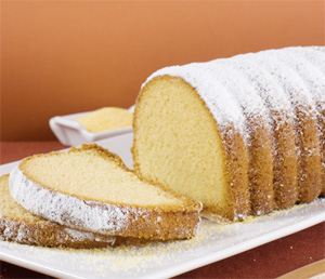 110 g burro, 130 g zucchero, 3 uova, 100 g farina gialla (farina di mais per la polenta fioretto), 80 g farina bianca, 1 bustina lievito per dolci, 1 bustina vanillina, un pizzico di sale, un po’ di rhum (a piacere e secondo il gusto), zucchero al velo.